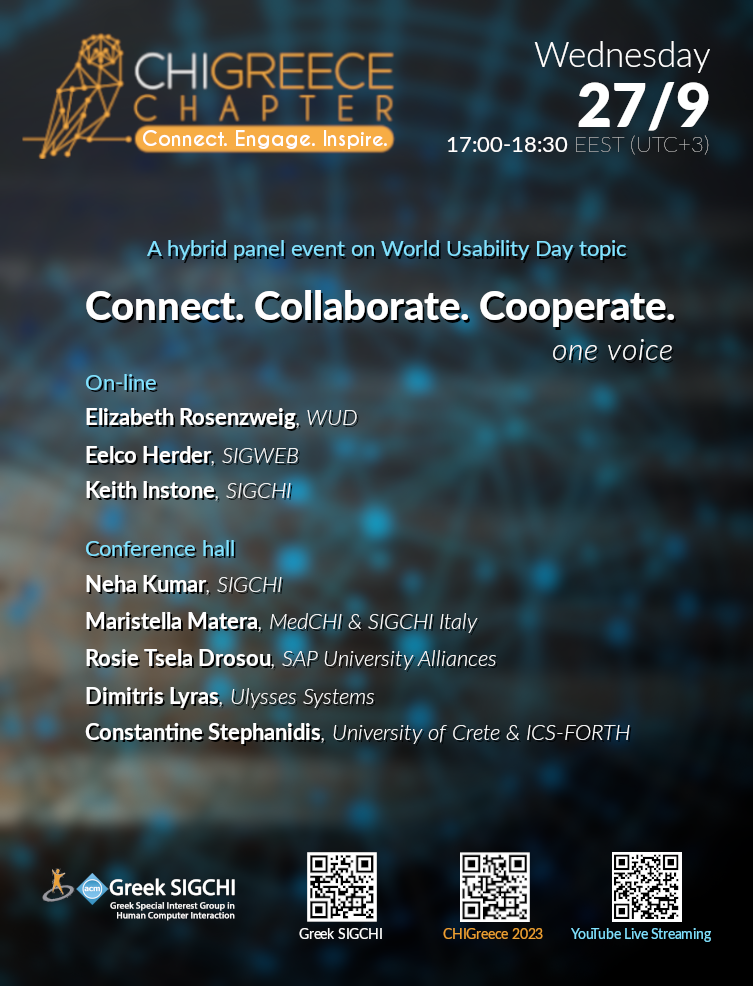 A hybrid panel event on World Usability Days "One Voice: Connect. Collaborate." will take place on Wednesday, September 27th.
